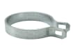 The 4-inch end band is designed for a precise fit on standard 4-inch pipe. It features two offset tangs that are pulled together using a 5/16 inch carriage bolt and nut (sold separately). This clamping action secures the rail end cup or truss rod tightener firmly against the post. Because 4-inch posts are typically used for tall fences, multiple end bands are often installed on a single post to secure multiple horizontal rails, ensuring the mesh remains flat and taut.
